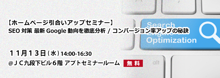 【ホームページ引合いアップセミナー】SEO対策 最新Google動向を徹底分析 / コンバージョン率アップの秘訣